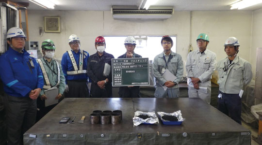 審査チェックシートに基づいた作業標準書をはじめとする必要な書類の確認、配合設計ならびに混合物の基本データや品質管理書類の確認、混合物の計量値と目視確認(試料サンプリング)等、書類関係および混合物の製造工程に関連する項目では、全ての工場において不備はありませんでした。