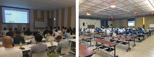 2025年度の技術発表会は2025年7月25日に開催しました。今年も、去年同様に本会場から遠方である東部支部と西部支部から会場への参加が容易となうりょうに、メイン会場である中部会場(静岡市葵区)「あざれあ」に加え、サテライト会場を設ける事としました。サテライト会場は、東部会場「プラザヴェルテ・コンベンションぬまづ」、西部会場「協同組合浜松卸商センター(アルラ)」を設けました。これにより、参加人数を増やす事ができました。