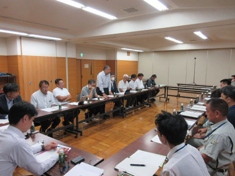 下田土木事務所との技術懇談会は、対面にて9月6日に実施しました。土木事務所8名、協会側5名の出席で、舗装工事に関する下記の議題について懇談しました。
